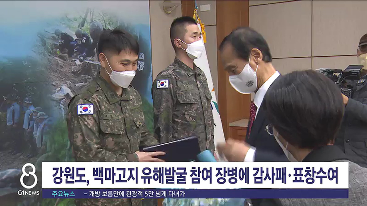 강원도는 국방부 유해발굴감식단장과 5사단 유해발굴 TF단장 등 백마고지 유해발굴에 참여한 이들에 대한 감사패와 표창장을 수여했습니다.