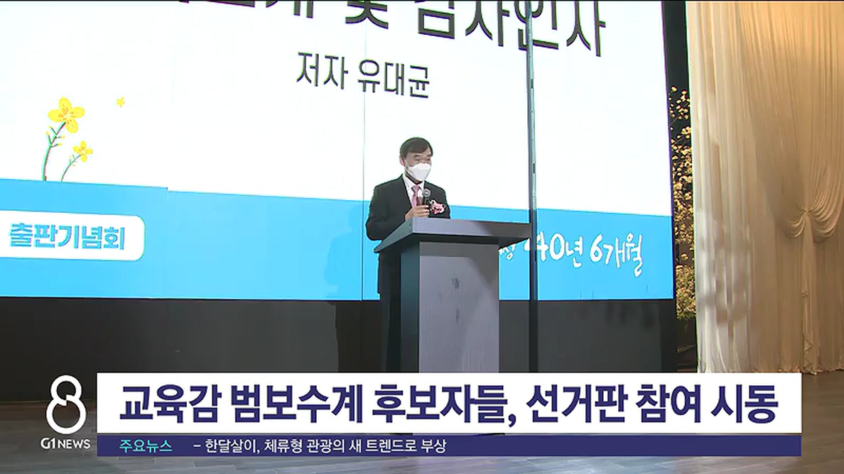 내년 교육감선거 출마 예정자인 유대균 전 강원도초등교장협의회장이 오늘(4일) 춘천 미래컨벤션에서 출판기념회를 열었습니다.