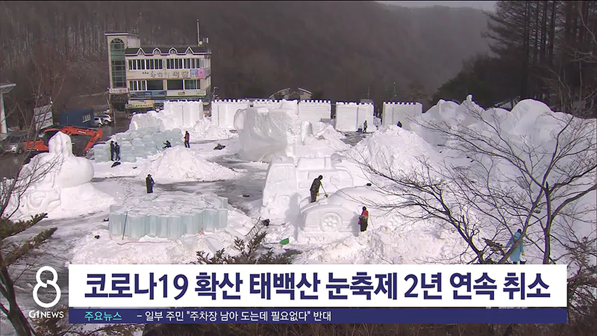 태백시문화재단은 최근 일주일 새 태백 지역의 확진자 수가 30명을 넘어서자 내년 1월 14일부터 열흘간 열릴 예정이었던 제29회 태백산 눈축제를 취소하기로 결정했습니다.