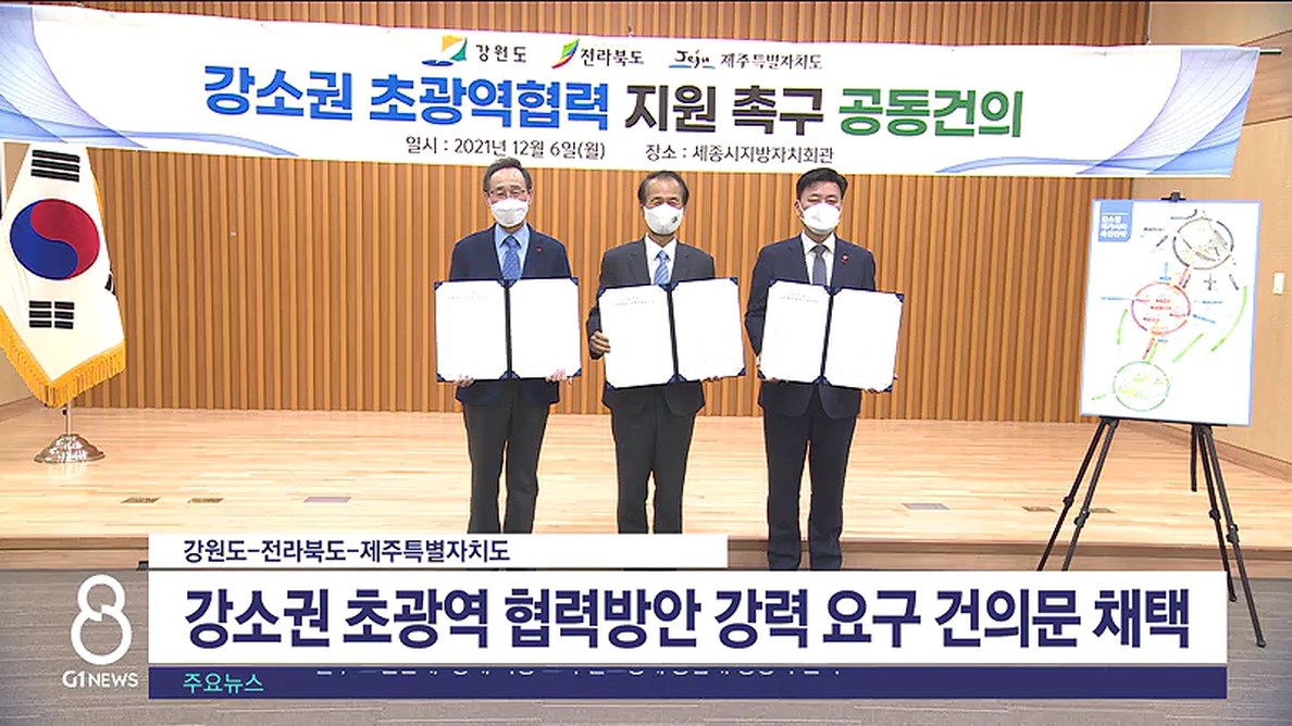 강원도와 전북, 제주도는 공동건의문을 통해 "정부가 추진하는 초광역 협력지원책은 수도권과 지방 격차를 줄이기 위한 정책이지만, 정책 초점이 광역시 정도의 대도시가 있는 지역에 맞춰져 있다"고 지적했습니다.