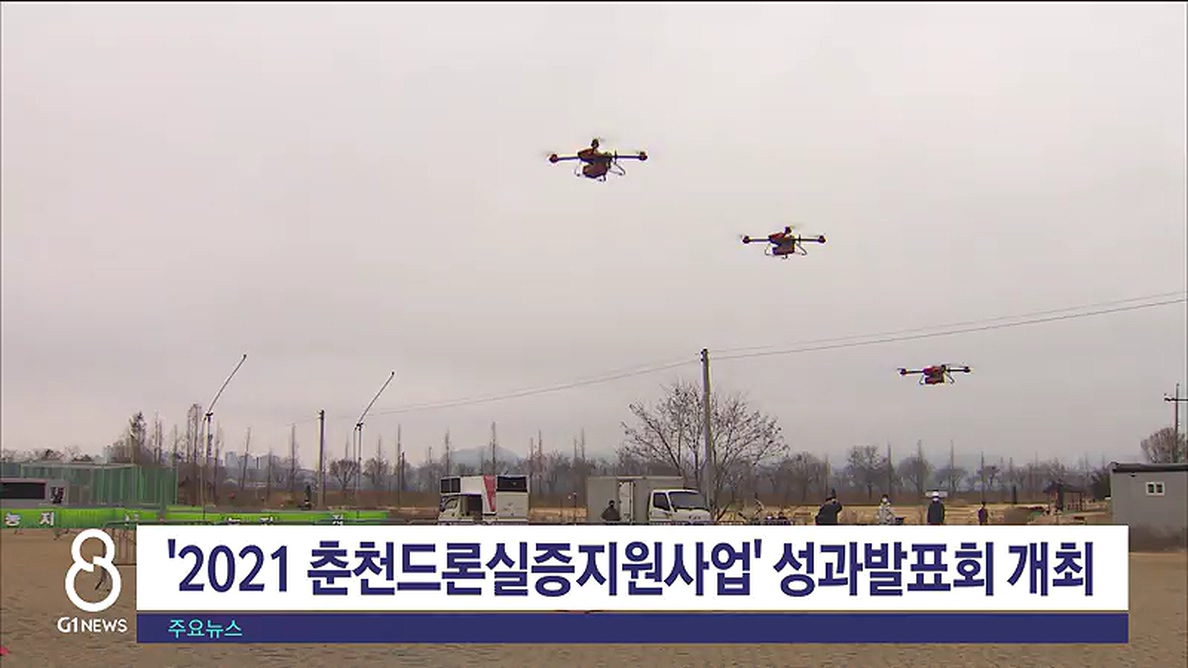 강원정보문화진흥원은 오늘 서면 애니메이션박물관 인근에서 춘천시와 춘천시 드론스포츠협회, 민간 드론 업체 관계자들이 참석한 가운데, '2021년 춘천 드론실증지원사업 성과발표회'를 개최했습니다.