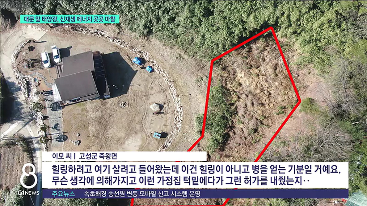 "힐링하려고 여기 살려고 들어왔는데 이건 힐링이 아니고 병을 얻는 기분일 거예요. 무슨 생각에 의해가지고 이런 가정집 턱밑에다가 그런 허가를 내줬는지..."