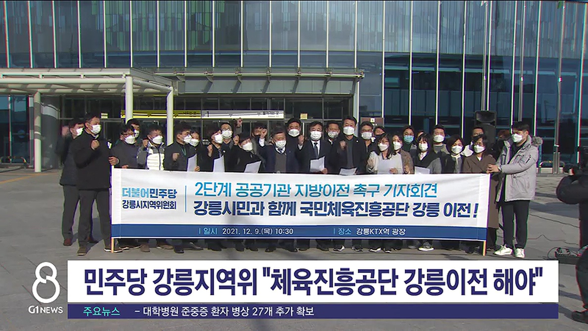 더불어민주당 강릉시지역위원회가 기자회견을 열고, 국민체육진흥공단 강릉 이전을 촉구했습니다.