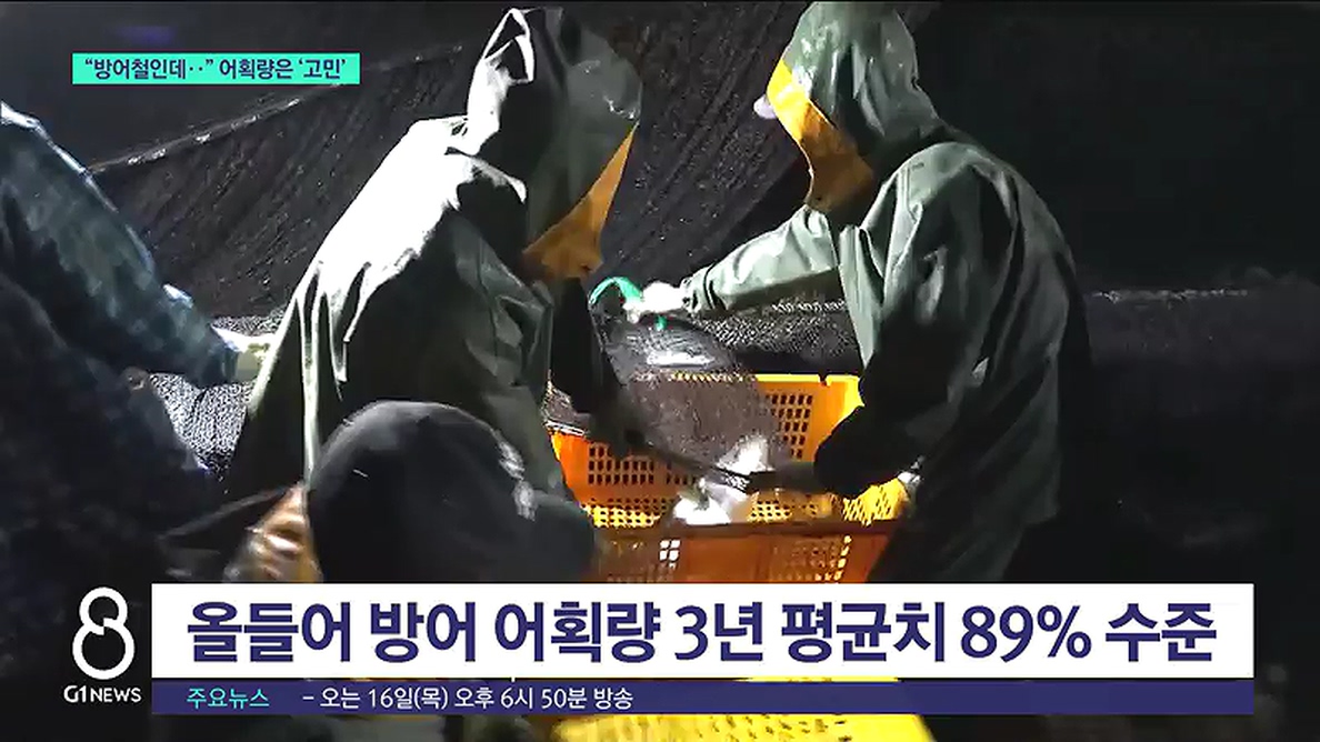 동해안에선 난류성 어종인 방어가 잘 나지 않다가 10여년전부터 잡히기 시작해 겨울철 어민들에게 효자 노릇을 하고 있는데,