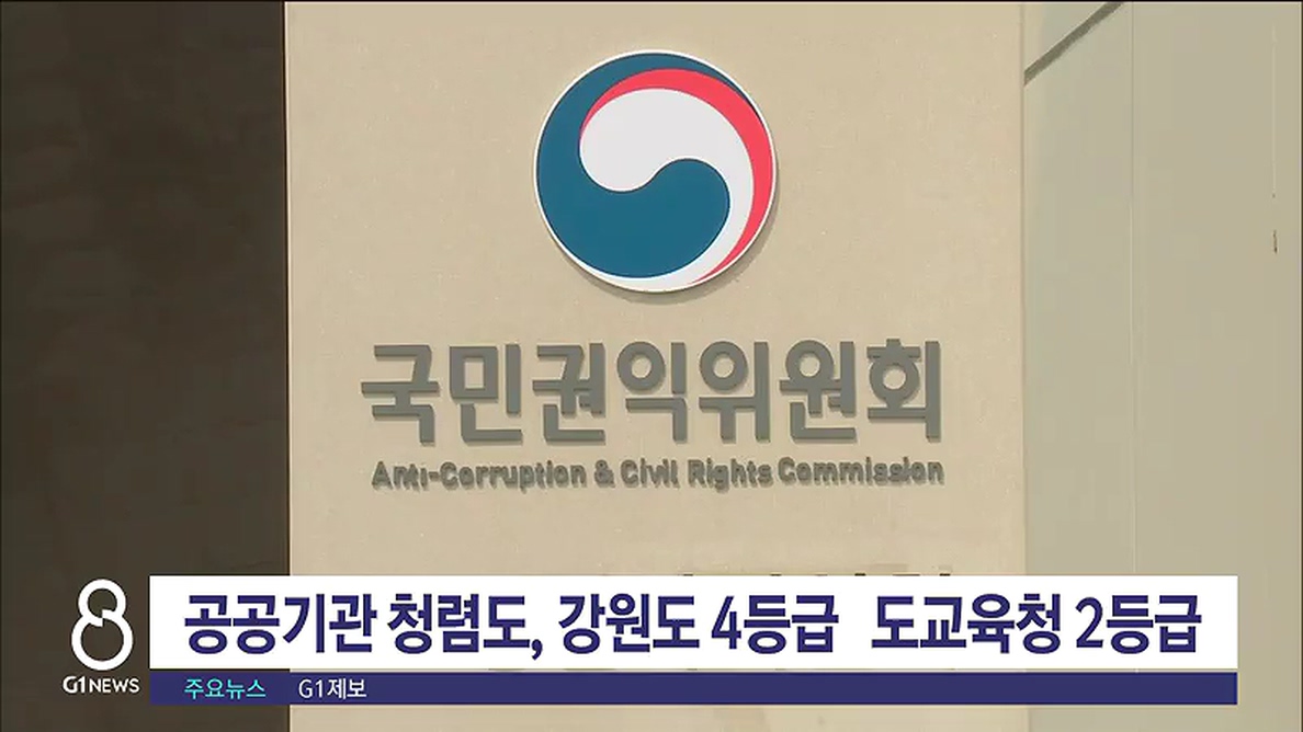 국민권익위원회가 발표한 '2021년 공공기관 청렴도 측정' 5등급 평가에서 강원도는 4등급을 받았고, 강원도교육청은 지난해보다 한단계 오른 2등급을 받았습니다.