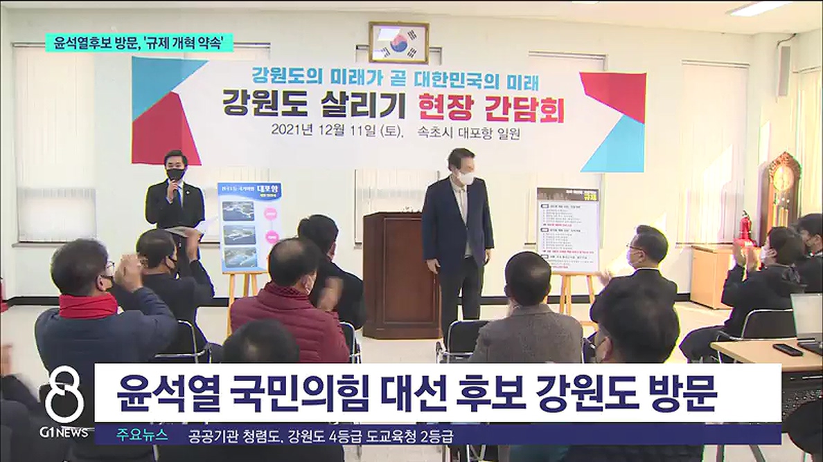 오늘도 강릉 오죽헌과 속초 대포항을 찾은 윤 후보는 간담회를 열어 오색케이블카 등 지역 현안에 대한 해법을 모색했습니다.