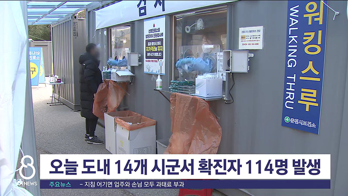 일주일 넘게 강원도에서 하루 평균 100명이 넘는 코로나19 확진자가 쏟아지고 있는 가운데, 오늘은 14개 시군에서 109명의 확진자가 나왔습니다.