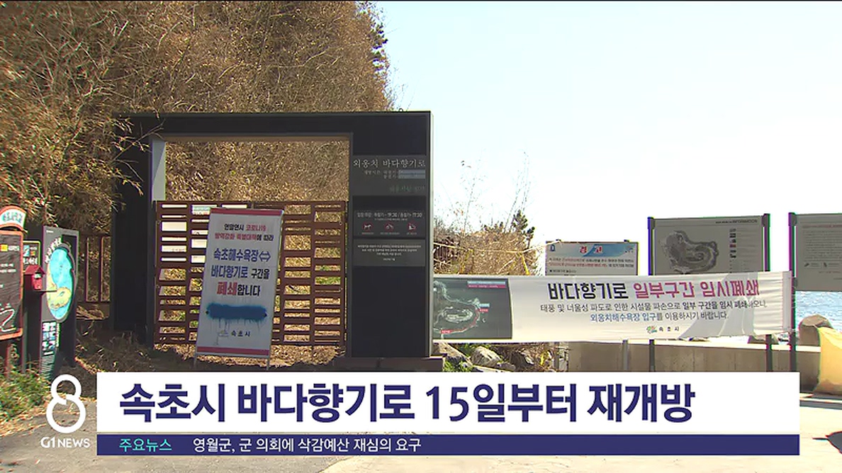 지난해 태풍 피해로 통행이 제한돼 왔던 속초 바다향기로가 내일(15일)부터 전면 개방됩니다.