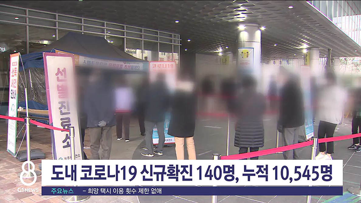 도내 코로나19 신규확진 140명, 누적 10545명