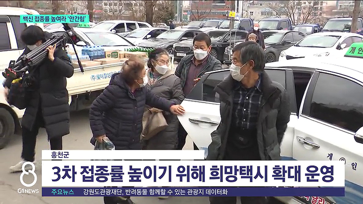 홍천군은 코로나19 백신 3차 접종을 맞으려는 주민을 위해 희망 택시 운영을 확대했습니다.