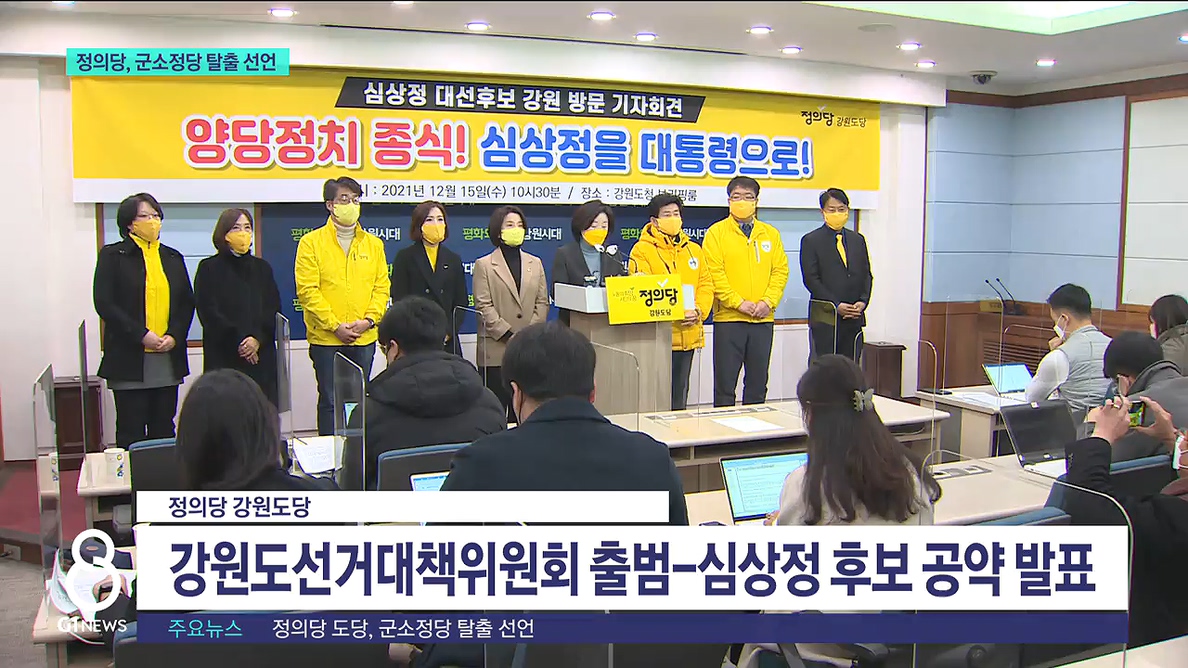 발대식에 참석한 심상정 정의당 대선 후보는 강원도 관련 공약을 발표했습니다.