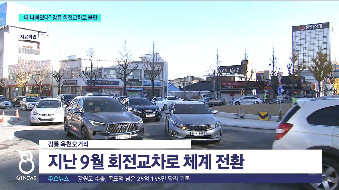 요즘 강릉에선 도심 번화가에 설치된 회전교차로를 두고 논란이 일고 있습니다.
