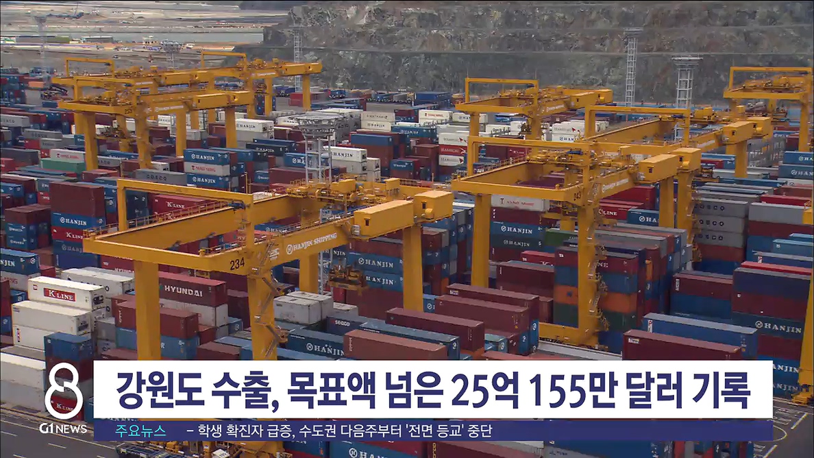강원도는 올해 11월을 기준으로 강원도 수출액은 25억 155만 달러로, 올해 목표인 25억 달러를 넘어섰다고 밝혔습니다.