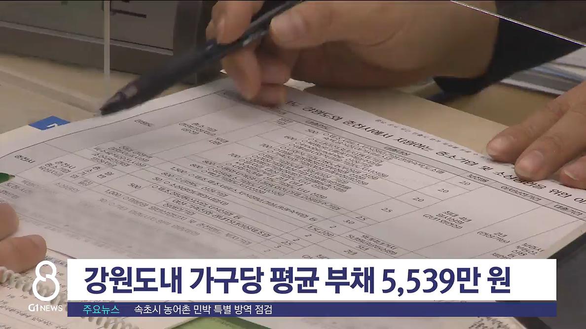 강원도내 가계 빚이 사상 최고 수준을 기록하면서 도내 가구당 5,500여 만원의 빚을 지고 있는 것으로 나타났습니다.