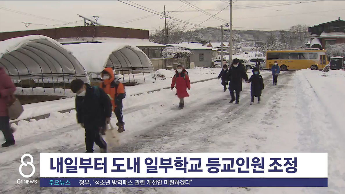코로나19 상황 악화로 정부의 사회적거리두기가 강화됨에 따라, 내일(20일)부터 도내 일부 학교 등교인원도 조정됩니다.