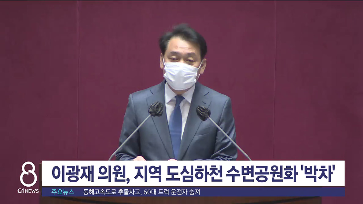 더불어민주당 선대위 미래경제위원장인 이광재 의원은 오늘, 주민 삶과 밀접한 지방 도심하천에 수변공원 조성을 지원하는 '하천법 일부개정 법률안'을 대표발의했습니다.