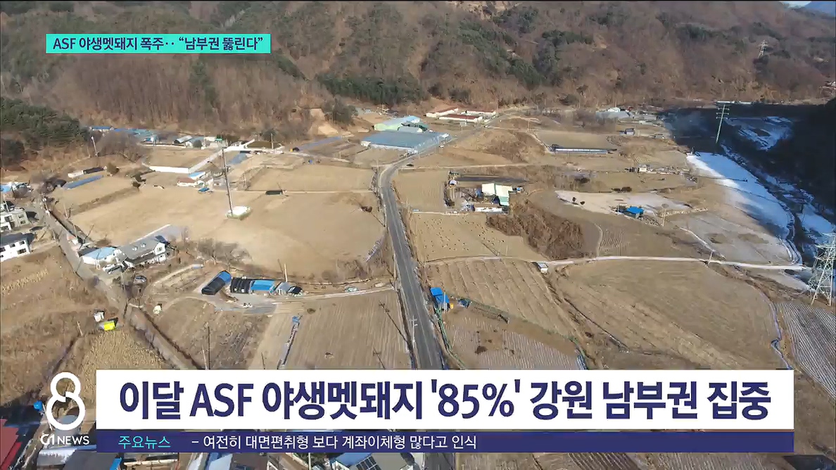 이달 전체 ASF 야생멧돼지의 85%가 영월과 정선, 그리고 인접한 충북 제천 등 강원 남부권을 고리로 쏟아졌습니다.