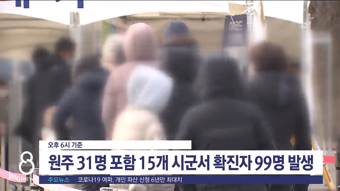 원주 31명 포함 15개 시군서 확진자 99명 발생