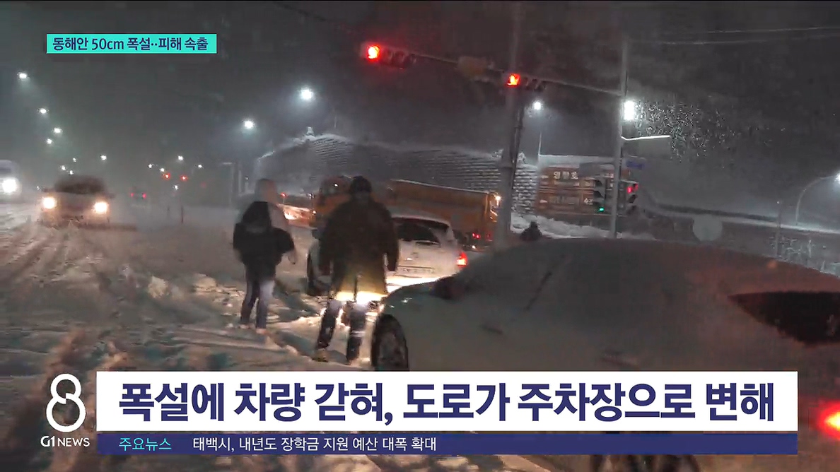 어제(24일) 저녁부터 동해안 지역을 중심으로 내리기 시작한 눈은 오늘 오전까지 최대 60cm에 가까운 적설을 기록했습니다.