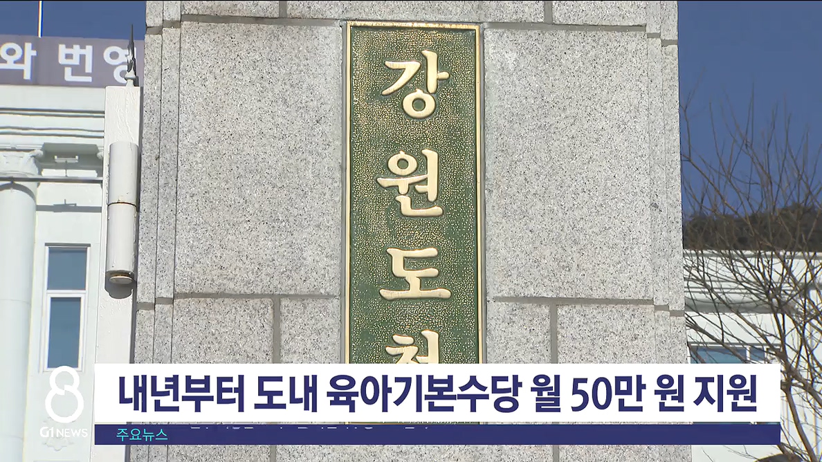 내년부터 도내 육아기본수당이 아동 1명당 10만 원 인상된 월 50만 원씩 지원됩니다.