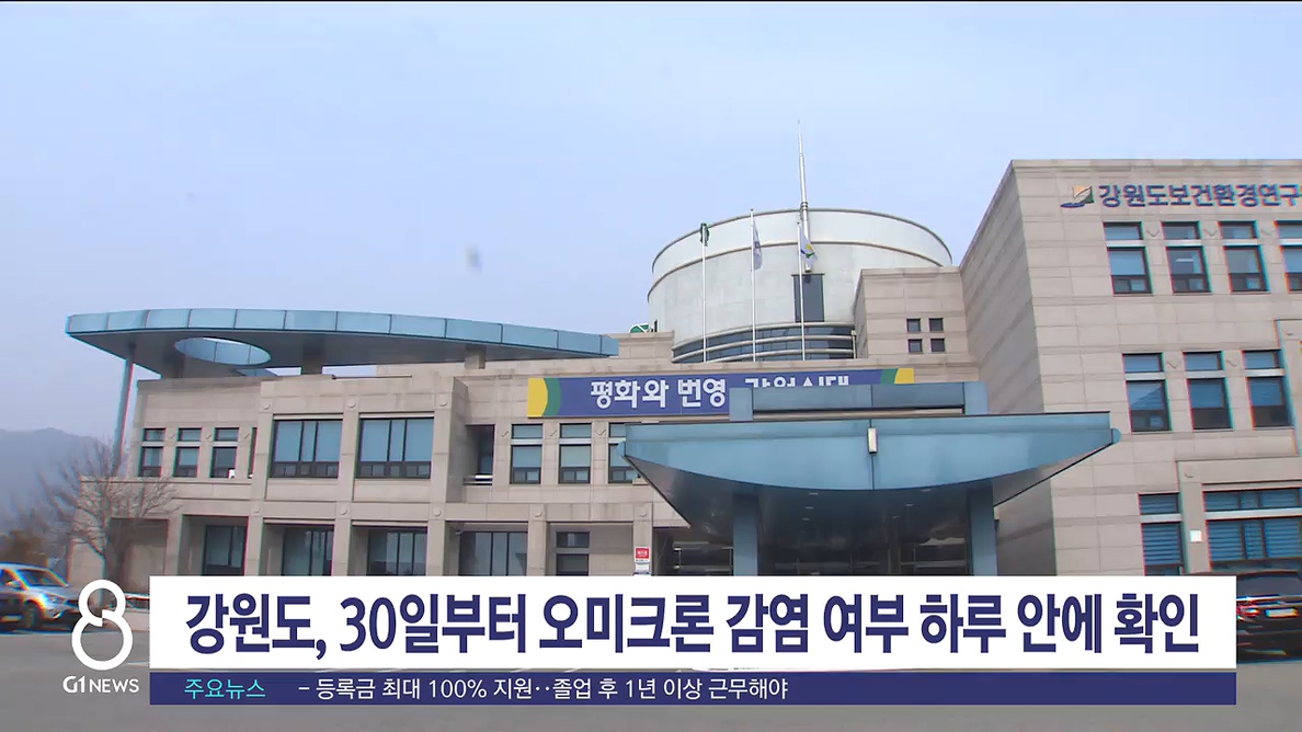 강원도 보건환경연구원은 질병관리청이 개발한 PCR 시약을 받아, 오는 30일부터는 질병관리청을 거치지 않고 오미크론 변이 검사를 자체적으로 진행할 계획이라고 밝혔습니다.
