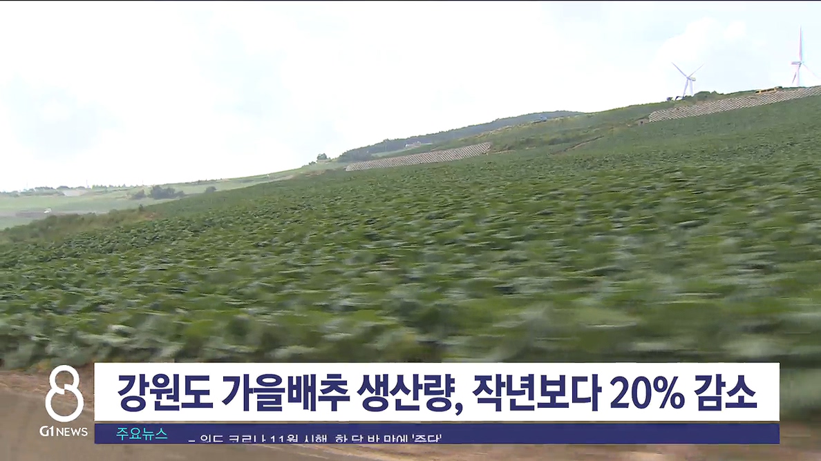올해 강원도내 가을배추 생산량이 이상기후와 농촌 인력난 등으로 지난해보다 20% 가량 급감한 것으로 나타났습니다.