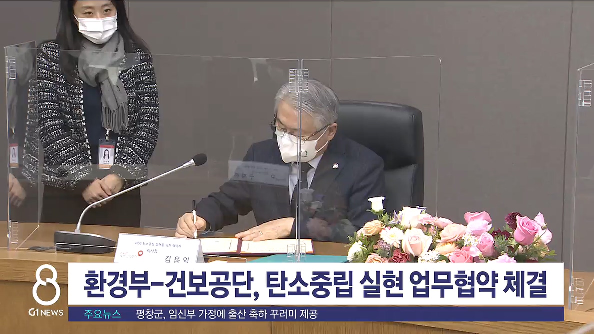 한정애 환경부장관과 김용익 국민건강보험공단 이사장은 오늘 건보공단에서 2050 탄소중립 실현을 위한 업무협약을 체결했습니다.