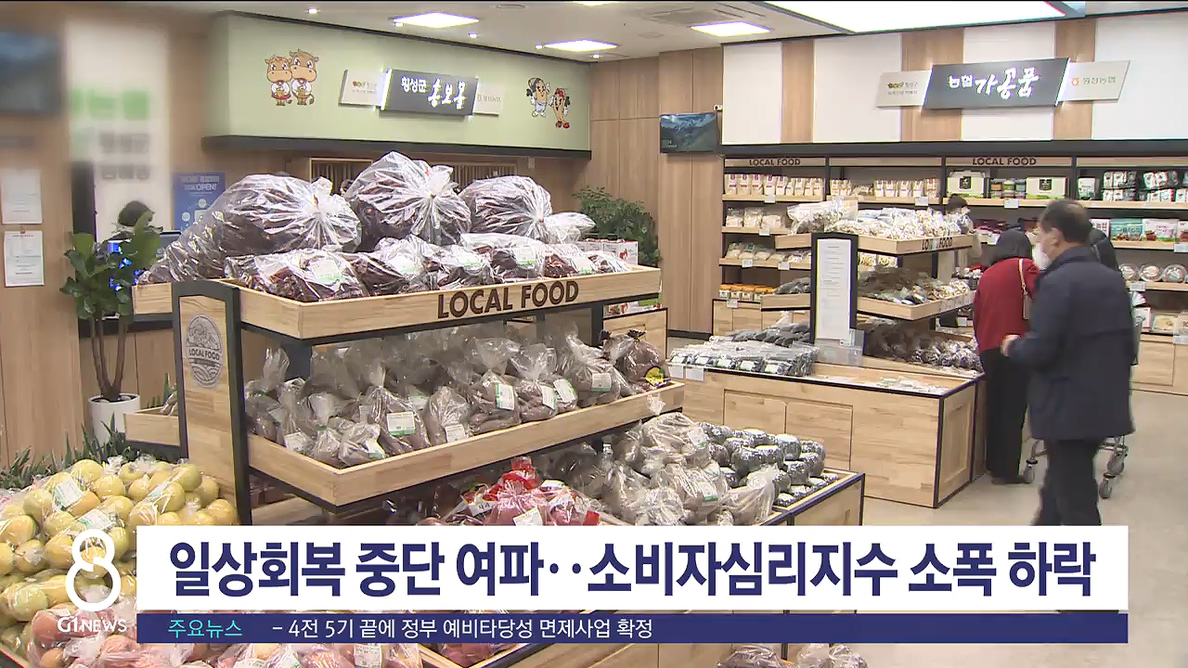 위드 코로나가 중단된 이번 달, 강원도 소비자심리지수가 지난달보다 소폭 하락한 것으로 나타났습니다.