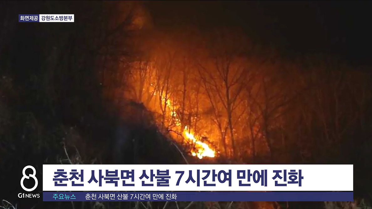 오늘 새벽 2시 45분쯤, 춘천시 사북면 가일리의 한 주택에서 난 불이 인근 야산으로 번졌고, 7시간여 만에 꺼졌습니다.