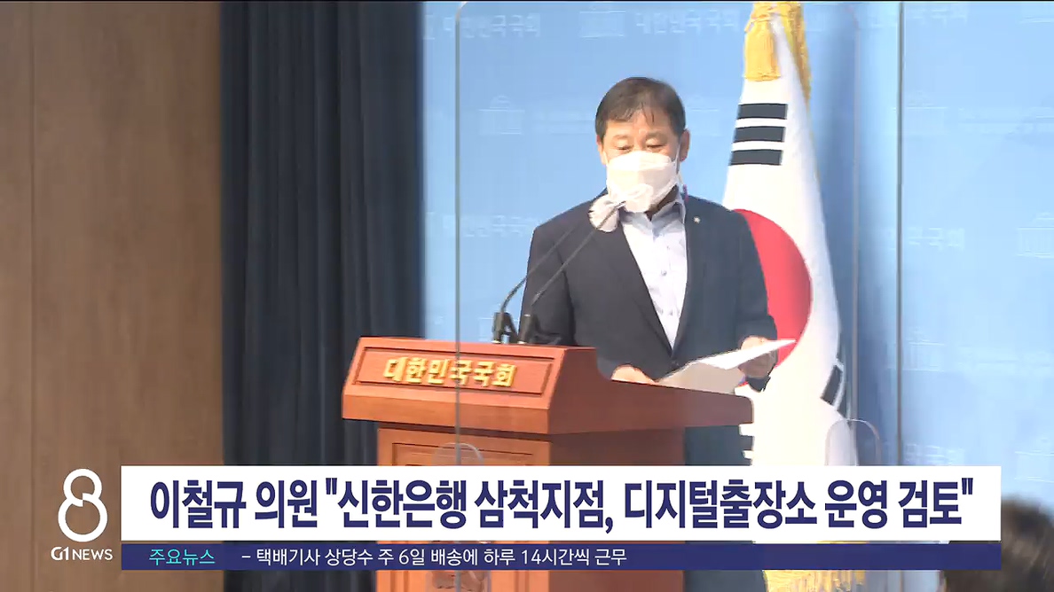 신한은행 본점 관계자는 오늘, 이철규 국회의원을 찾아, 신한은행 삼척지점을 창구직원 2명 등 직원 4명과 함께, 디지털데스크와 시니어 ATM 등을 갖춘 디지털출장소로 운영해, 고객 불편을 최소화 하겠다고 밝혔습니다.