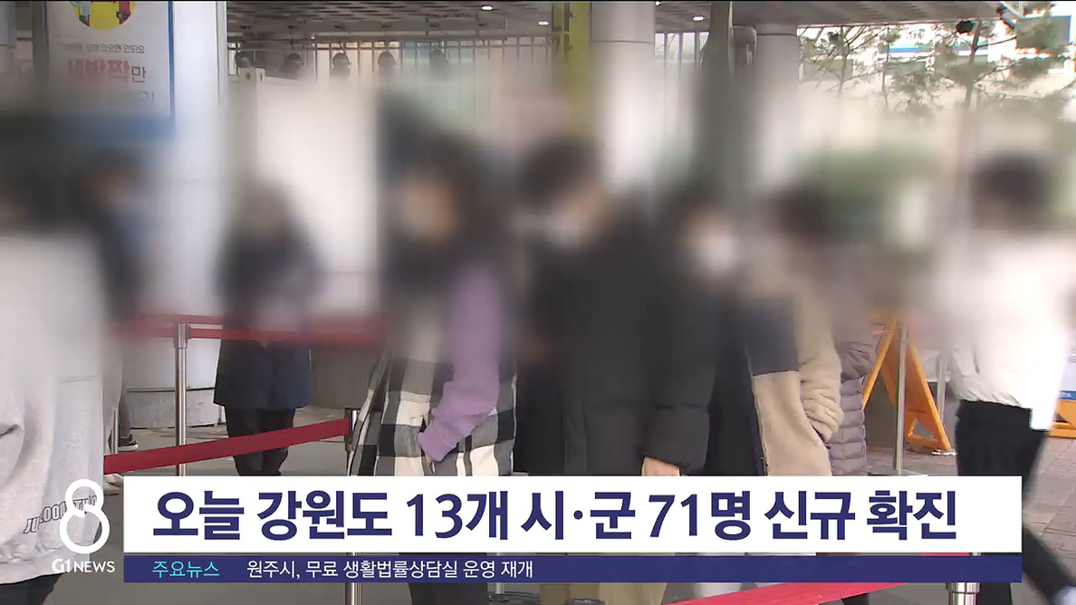 오늘 강원도 13개 시·군에서 코로나19 신규 확진자 71명이 나왔습니다.