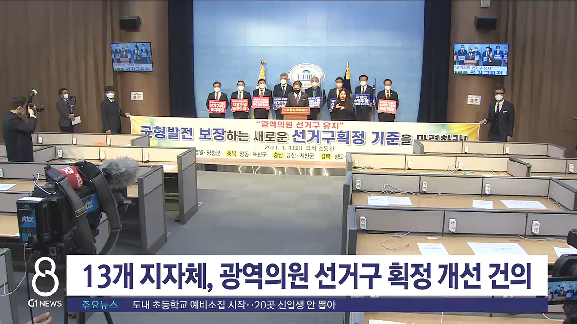 영월.평창.정선군을 비롯해, 헌법재판소 결정으로 광역의원 수가 줄어들 위기에 처한 전국 13개 지자체가 오늘, 국회에서 기자회견을 갖고, 광역의원 선거구 획정 개선을 촉구했습니다.