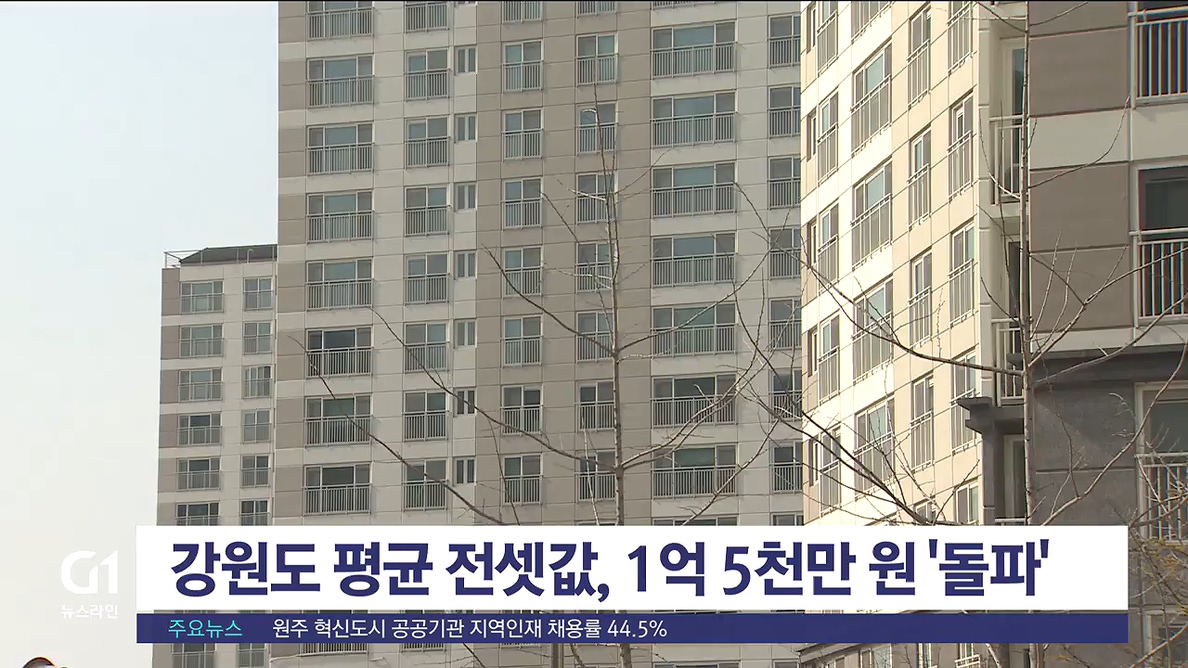 지난 달, 강원도 평균 전셋값이 1억 5천만 원을 돌파하며 역대 최고가를 경신했습니다.