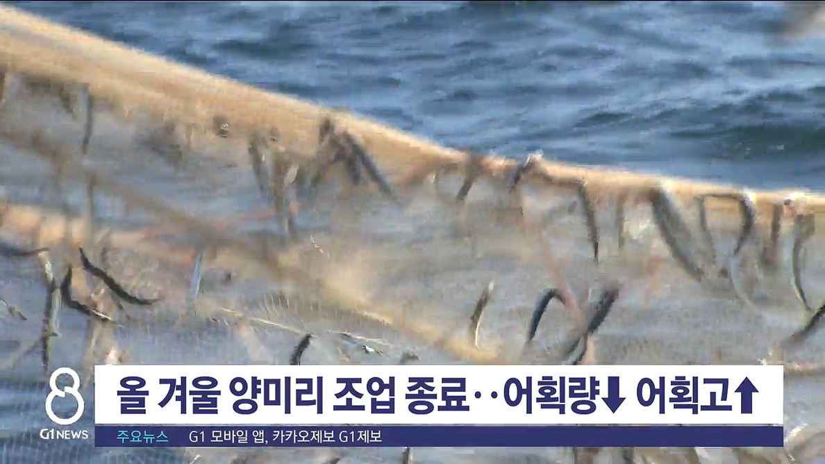 올 겨울 속초항 양미리 조업이 마무리된 가운데, 어획량은 줄었지만, 어획고는 늘어난 것으로 나타났습니다.