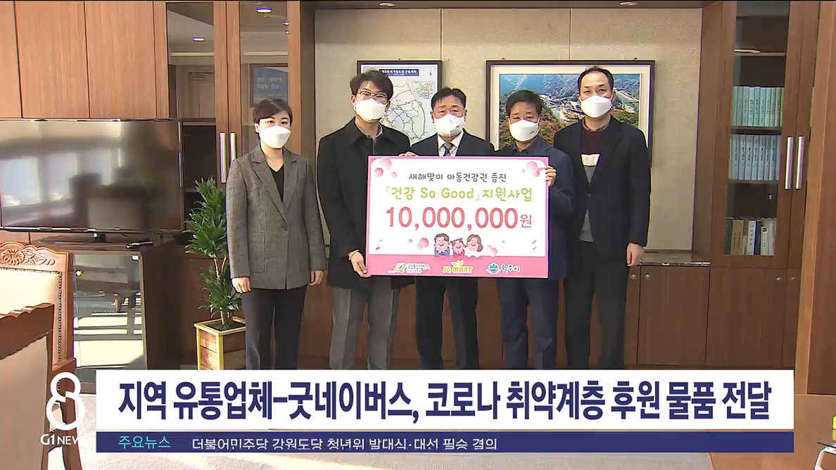 오늘 전달식에선 지역 유통업체와 굿네이버스에서 마련한 식료품 등 천만원 상당의 후원 물품이 전달됐습니다.