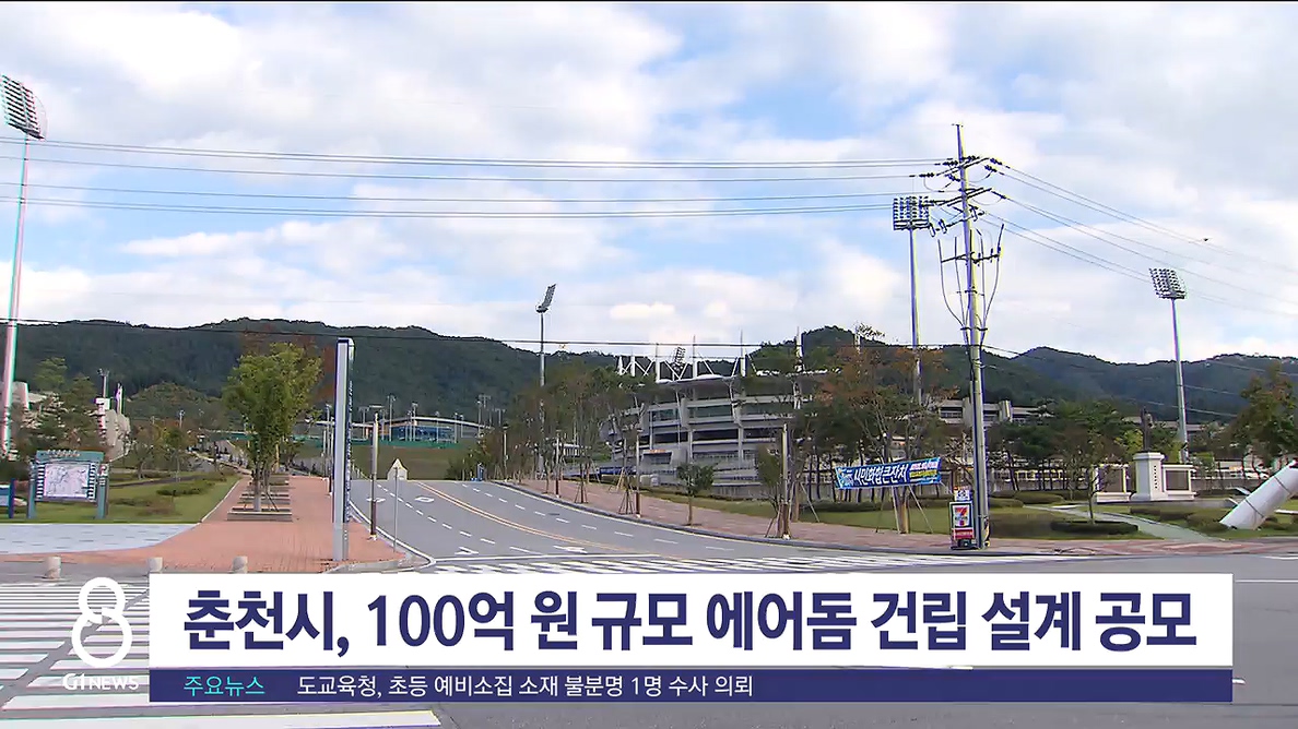 춘천시는 오는 21일 오후 5시까지, 송암스포츠타운 일대에 11,990㎡ 규모의 전지훈련 특화 시설인 '에어돔' 건립을 위한 설계 공모 신청서를 받는다고 밝혔습니다.