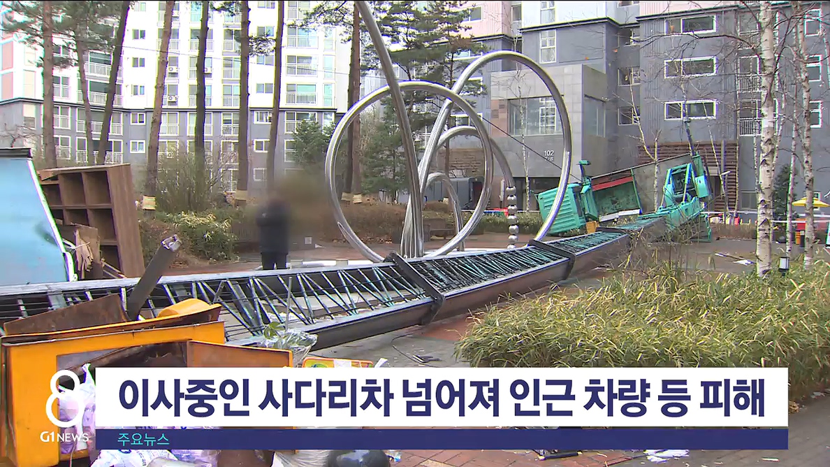 경찰은 사다리차가 이삿짐을 옮기던 중 중심을 잃고 쓰러진 것으로 보고 정확한 사고 경위를 조사하고 있습니다.