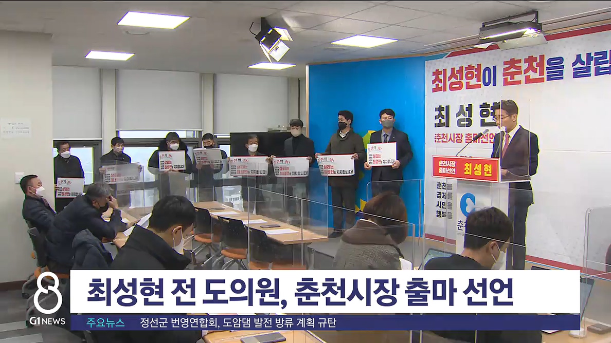 국민의힘 최성현 전 강원도의원은 춘천시청에서 춘천시장 출마 기자회견을 열고, 춘천을 명실상부한 수도권 도시로 키우기 위해 GTX-B노선 연결과 지역 대학 연계 인재 양성 사업에 힘쏟겠다고 밝혔습니다.