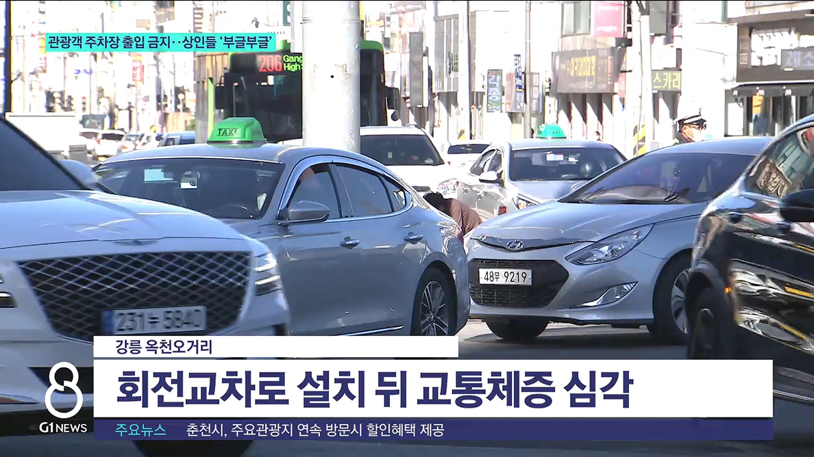 강릉시가 오거리에 회전교차로를 도입하면서 벌어진 일인데, 민원이 잇따르자 중앙시장 주차장의 관광객 이용을 막기로 했습니다.