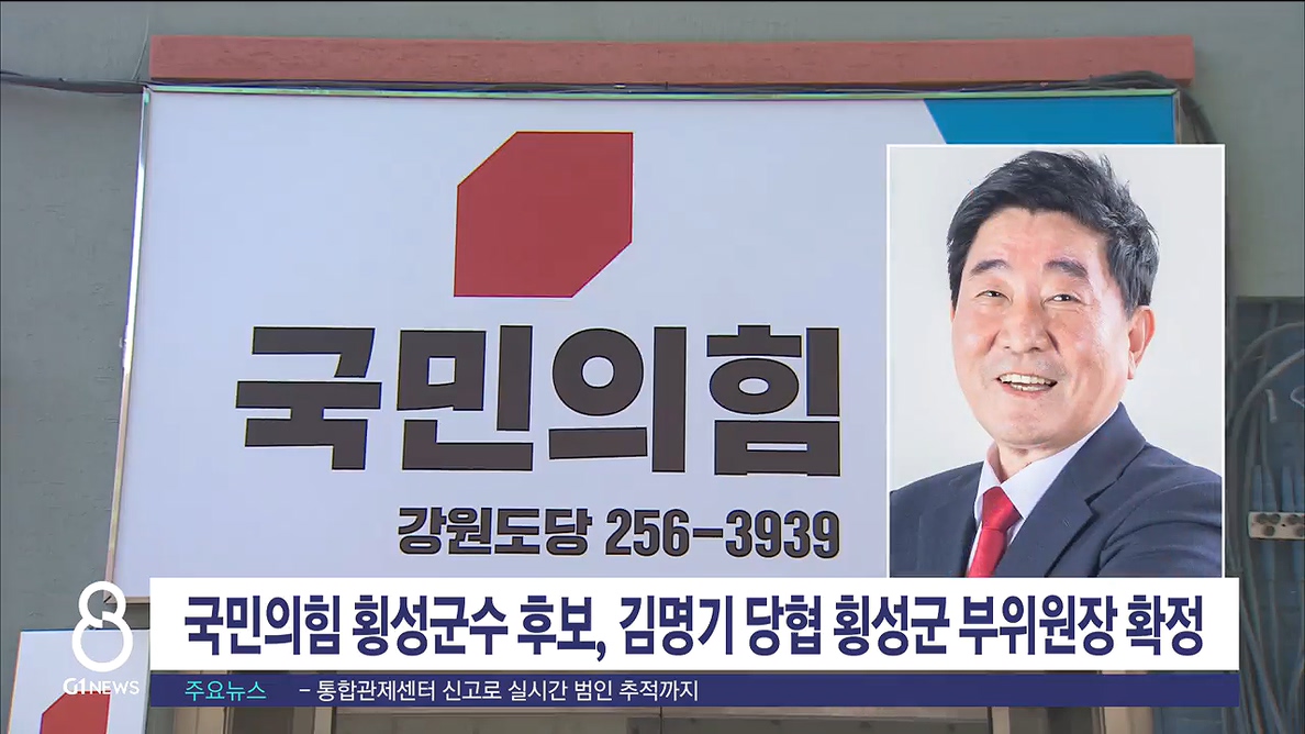 국민의힘 강원도당은 횡성군수 선거 후보 선정을 위한 책임당원과 일반군민 여론조사 결과, 김명기 횡성군 부위원장이 1위를 차지했다고 밝혔습니다.