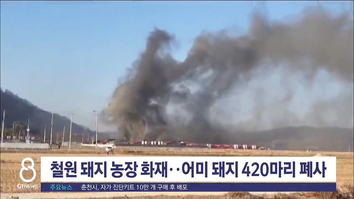 철원 돼지 농장 화재‥어미돼지 420마리 폐사