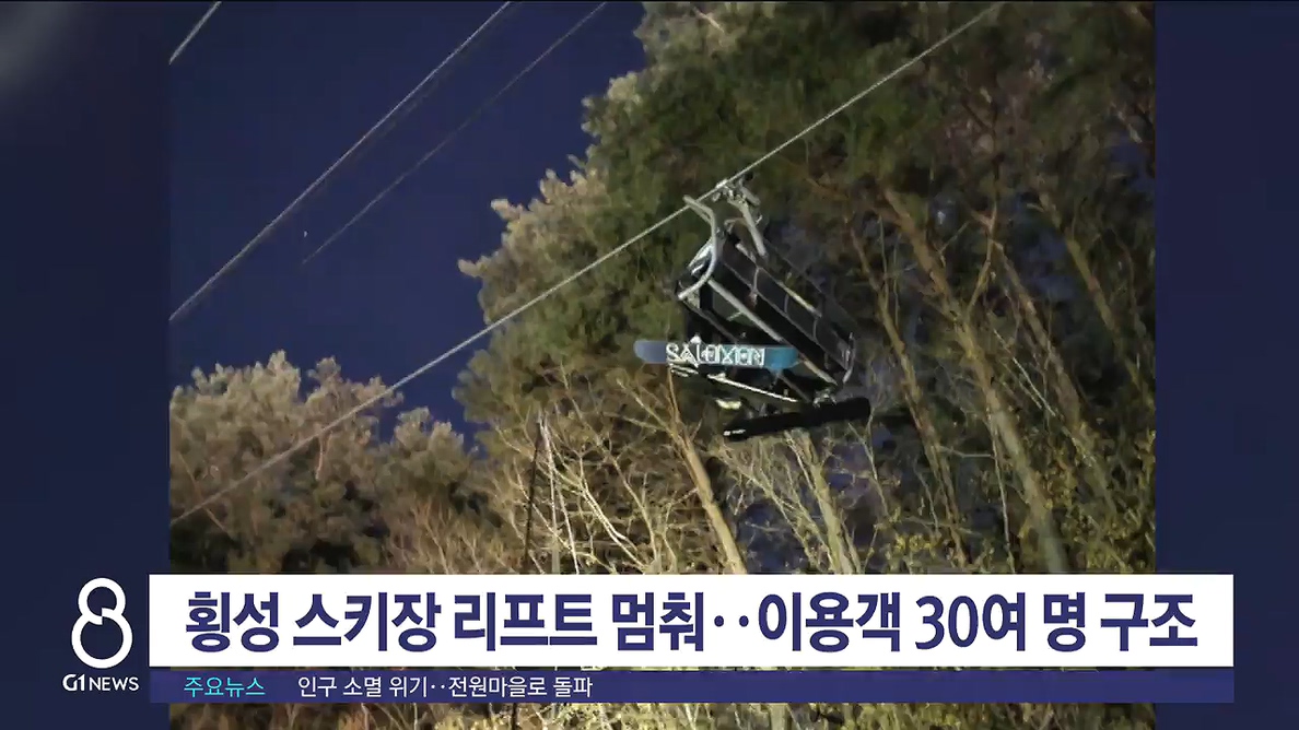 횡성 스키장 리프트 멈춰..이용객 30여 명 구조