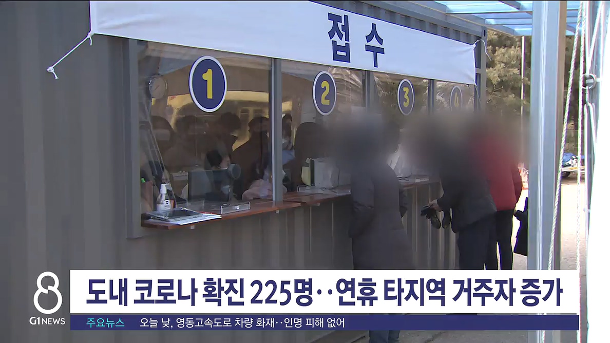 도내 코로나 확진 225명‥연휴 타지역 거주자 증가