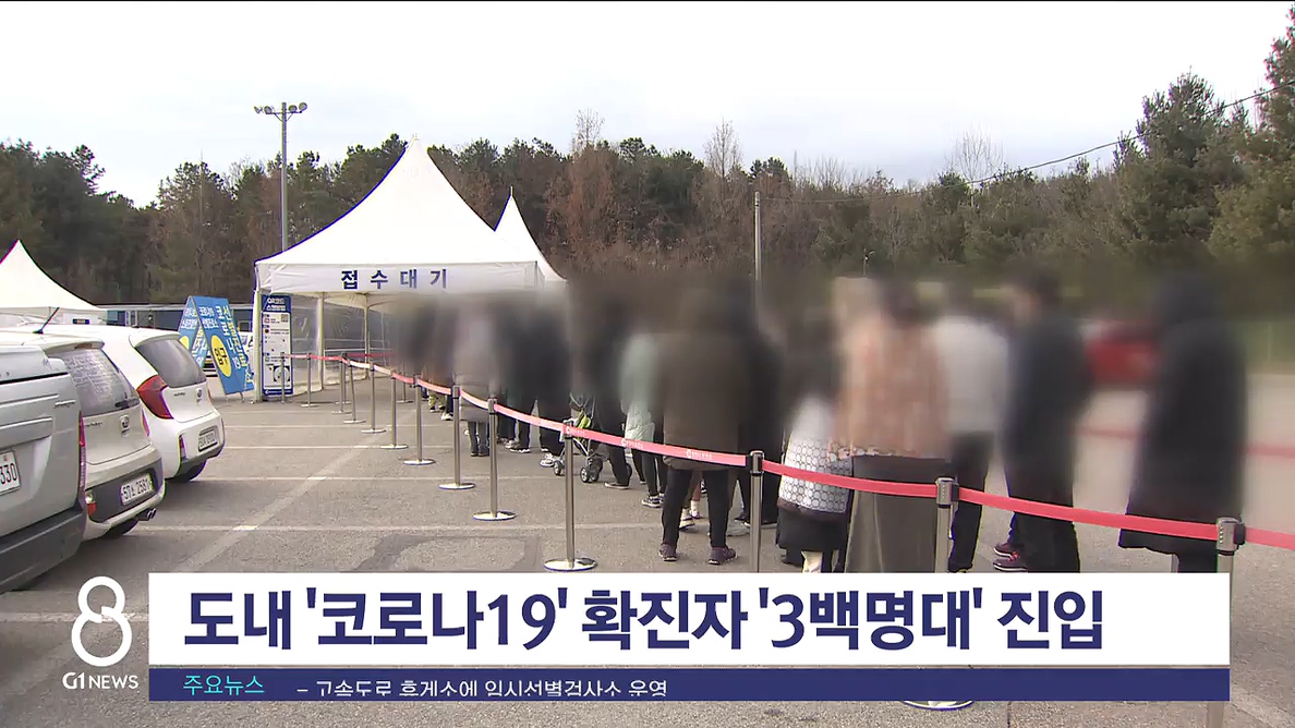 도내 '코로나19' 확진자 처음으로 '3백명대' 진입