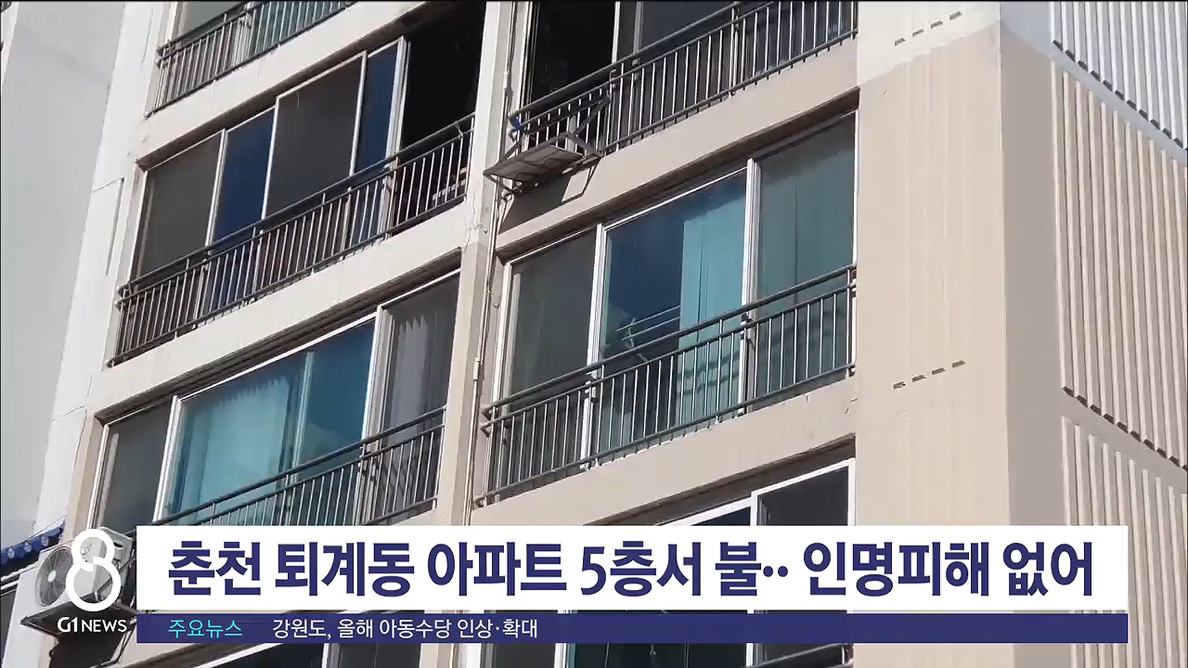 오늘 오후 12시 1분쯤, 춘천시 퇴계동의 한 아파트 5층에서 불이 나 20분 만에 꺼졌습니다.