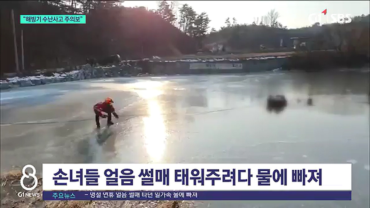 소방당국은 한낮 크게 오른 기온으로 얇아진 얼음이 깨지면서 사고가 난 것으로 보고 있습니다.