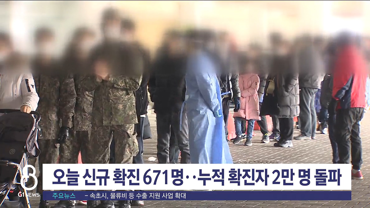 오늘(7일) 강원도에서는 17개 시·군에서 코로나19 신규 확진자 671명이 나와 누적 확진자 2만 명을 넘었습니다.