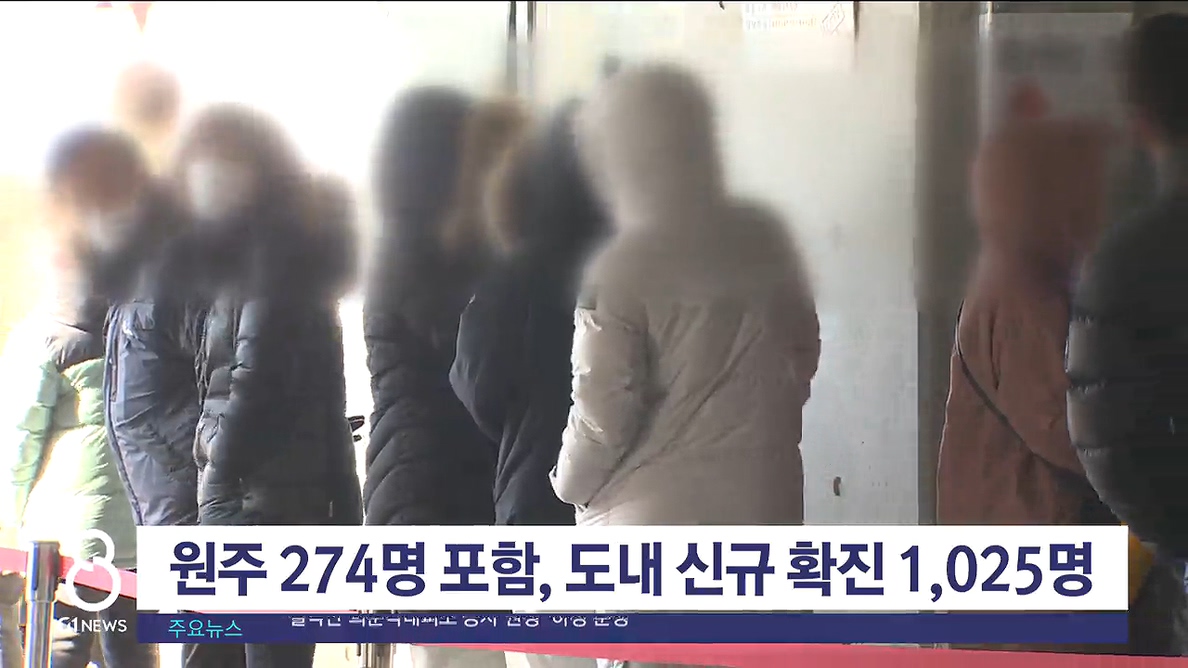 원주 274명 포함, 도내 신규 확진 1,025명