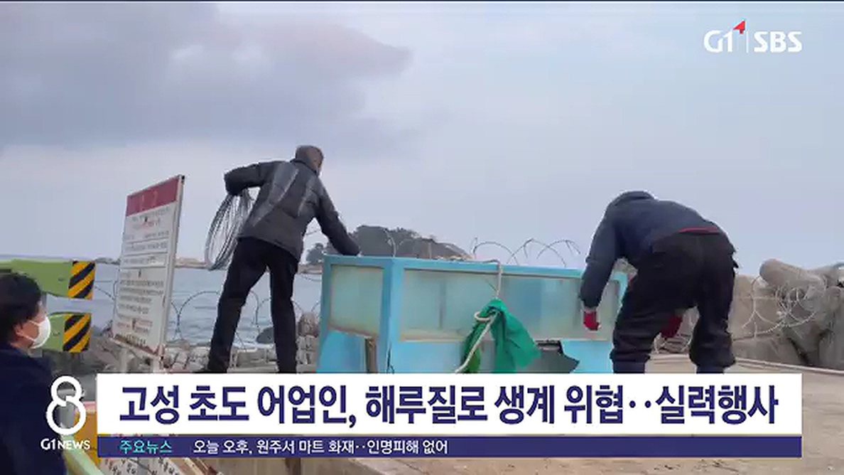 고성 현내면 초도항 어업인들이 다이버들의 해루질로 인해 생계를 위협받고 있다며 실력행사에 나섰습니다.