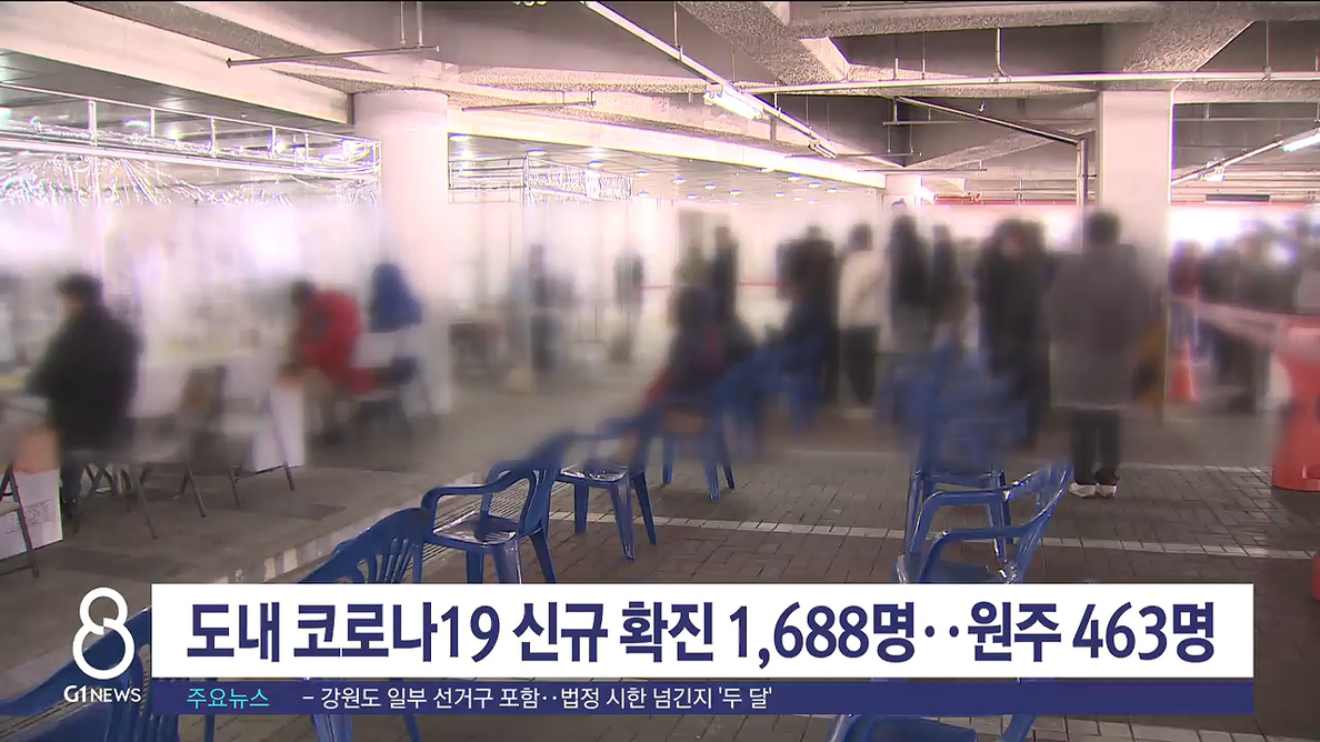 도내 코로나19 신규 확진 1,688명‥원주 463명